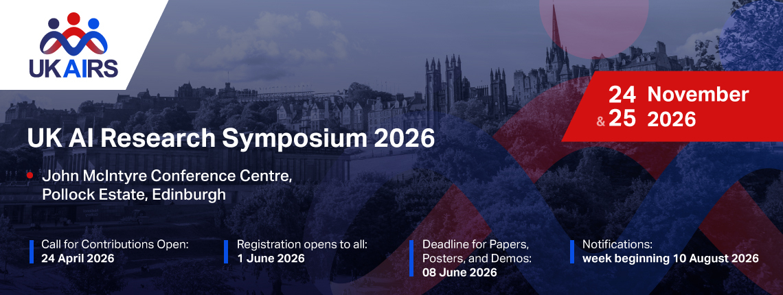 The UK AI Research Symposium (UKAIRS) is the premier national gathering for the UK artificial intelligence research community. Organized in collaboration with UKRI, RAI UK, the national AI Hubs, and CDT centres, UKAIRS purpose is to bring together researchers and stakeholders from across disciplines, including computer science, engineering, and healthcare, to showcase leading research, encourage collaboration, identify cross-fertilisation opportunities, and help shape the future direction of AI research in the UK.